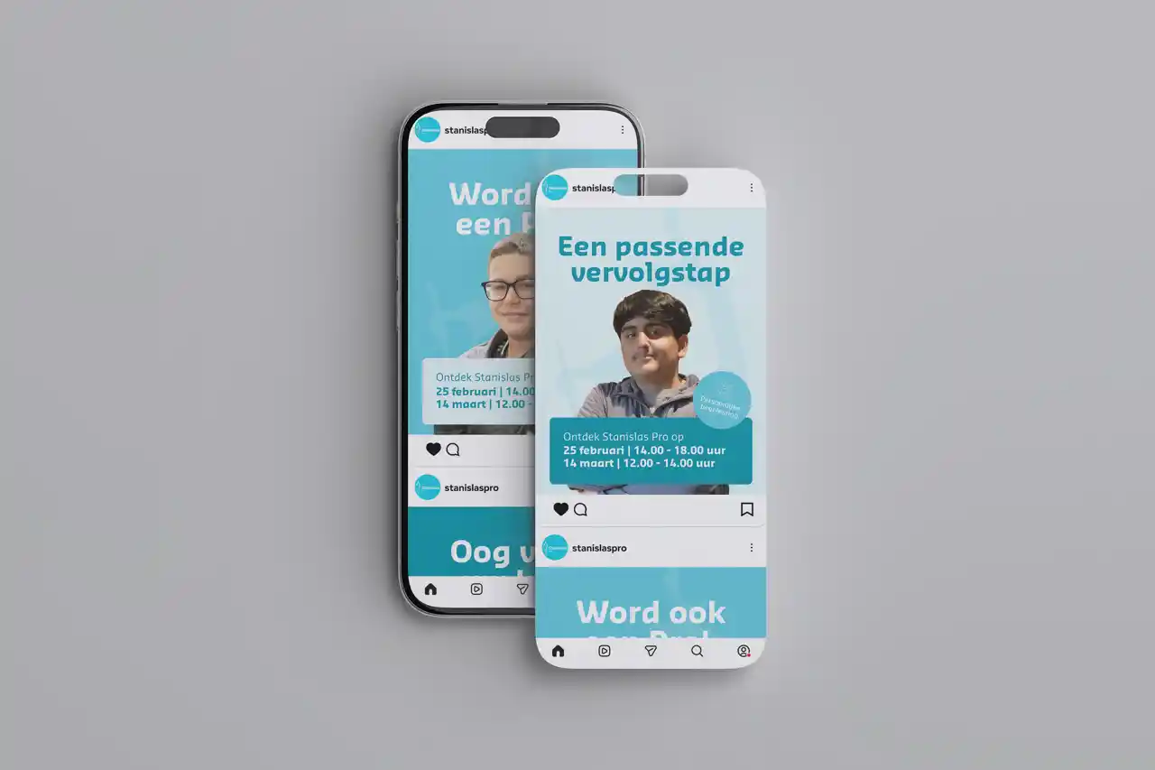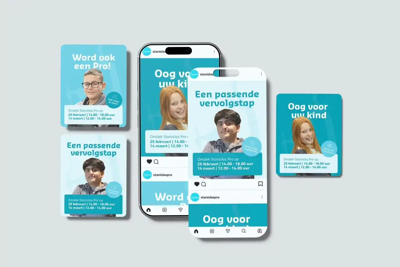 In de aanloop naar open dagen en de inschrijfperiode concurreren scholen om aandacht. Zeker online. Ouders oriënteren zich, leerlingen vormen hun eerste indruk en professionals kijken mee. De vraag was dus niet alleen hoe we bereik genereren, maar vooral hoe we het karakter van Stanislas Pro voelbaar maken, binnen een korte tijd.